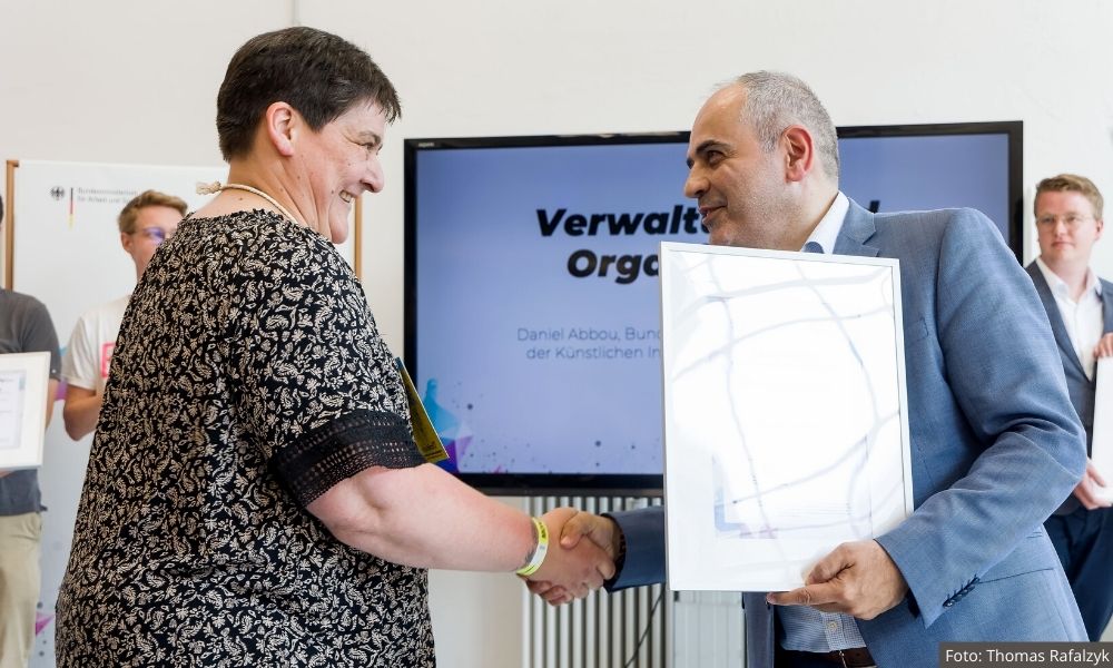 Drei Kolleginnen und Kollegen der Integrierten Leitstelle und ein Vertreter des DRK Landesverbandes Baden-Württemberg haben an der Preisverleihung in Berlin teilgenommen und den Preis entgegengenommen.