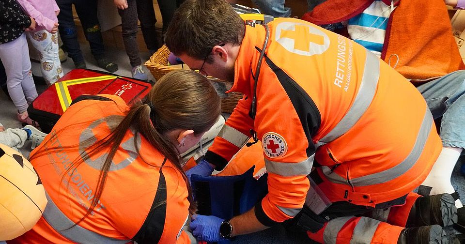 Immer in 2-er Teams rückten die Azubis von der Wache Leutkirch zu ihren Einsätzen aus, um diese von der Alarmierung bis zur Patientenübergabe selbstständig abzuarbeiten. Begleitet wurden sie dabei von zwei Praxisaneitenden.