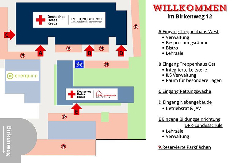 DRK Rettungsdienst…Im Jahr 2020 wurde das neue Gebäude im Birkenweg in Weingarten bezogen. Hier befindet sich neben der Verwaltung unseres Rettungsdienstes mit IT und Zentrallogistik auch der Betriebsstandort Weingarten der Integrierten Leitstelle Bodensee-Oberschwaben und die Rettungswache Weingarten.